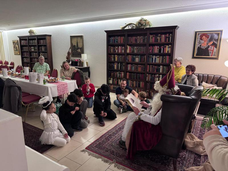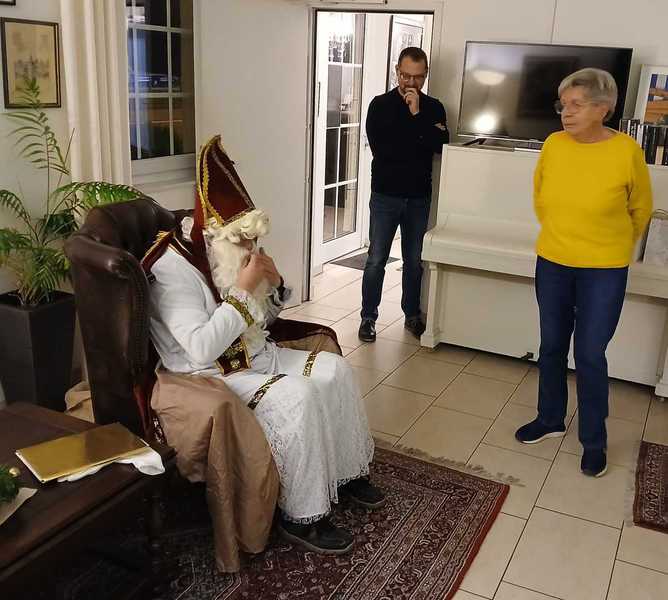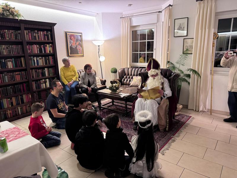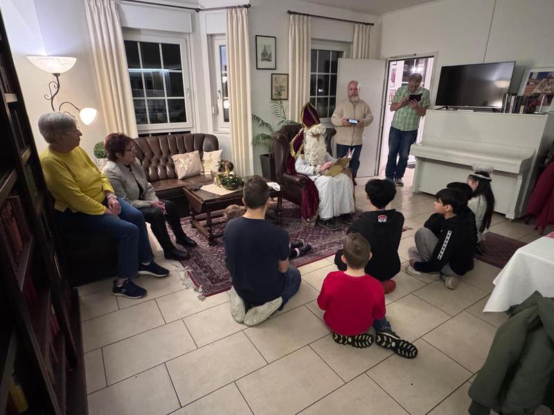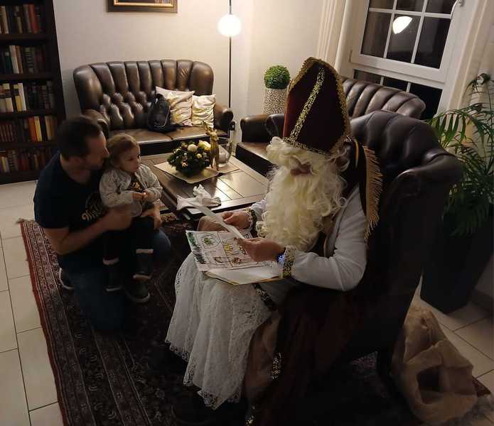Erwartungsvoll warteten die Kinder auf den Nikolaus. Nach viel Lob und ein paar wenigen Ermahnungen erhielten die Kinder liebevoll gefüllte Tüten. Zum Abschluss bedankte sich der Nikolaus mit Tüten bei Barbara über ihre langjährige Vorstandsarbeit und Michael für seine Tätigkeit als Hofmarschall für König Harry I.. Schließlich versammelte der Nikolaus die Kinder um sich und erzählte noch eine Weihnachtsgeschichte, bevor er sich auf den Weg zu Besuchen bei weiteren Kindern machen musste.