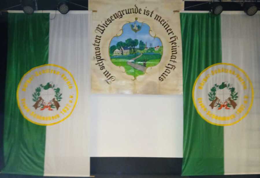 Um 19:05 Uhr führte die Offiziersspitze unsere Vereinsfahne mit unserem Königshaus Harry I., Betty I., Hofmarschall Michael sowie Gattin Jessica in den gefüllten Saal.