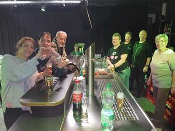 Unter Aufsicht von Barbara bestuhlten und dekorierten Nadine, Saskia, Silke, Kerstin, Ralf, Thomas, Thorsten und Wolfgang den Matthäuskirchsaal. König Harry I., Königin Betty I. und Hofmarschall Michael nahmen dann die Vorbereitungen mit Wohlwollen ab.