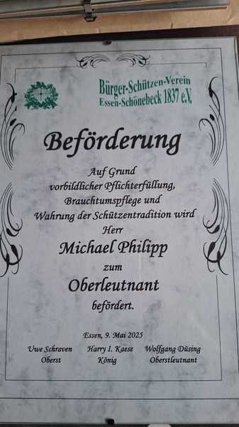 zum Leutnant ernannt. (Traditionell erschienen die neuen Offiziere mit dem Offiziersstab: Ein Kantholz in der Stärke 4 x 4 cm und 121 cm lang, grün-weiß gestrichen mit kleinen geistigen